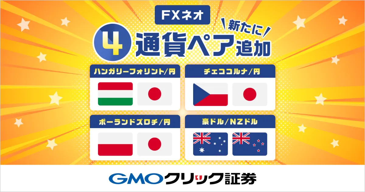 GMOクリック証券株式会社は、2025年3月17日より、FX取引サービス「FXネオ」において新たに4通貨ペアの取り扱いを開始します。この新たなサービスにより、投資家はより多くの選択肢から取引ができるようになります。