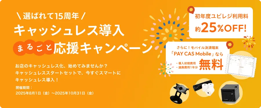 株式会社ユビレジ(本社:東京都渋谷区)が、来る2025年8月1日から10月31日まで、新たに「ユビレジ」を導入する飲食店やサービス業向けに「キャッシュレス導入まるごと応援キャンペーン」を実施します。このキャンペーンは、ユビレジがサービス開始から15周年を迎えることを記念して、これを機にキャッシュレス決済をスムーズに導入したい店舗に対して特別な支援を提供するものです。
