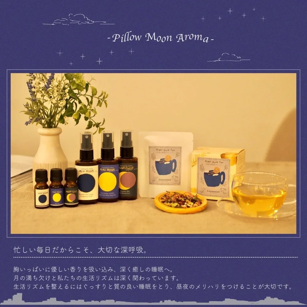 100%天然のエッセンシャルオイルから作られた『ピロームーンアロマ』は、本物の深みを持つ香りで、心を自然な状態へと導きます。