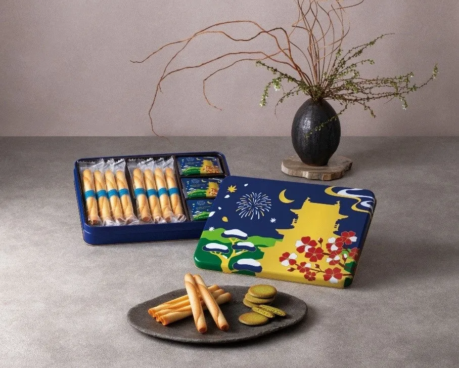 「Japanese Scenery」シリーズには、四季折々の風景や日本文化を象徴するモチーフが描かれたパッケージが用意されています。その中でも主力商品である「マッチャ ビスキュイ アソルティ」は、羽田・成田空港の一部店舗で先行発売されます。この詰め合わせには、ヨックモックの代表作である「シガール®」と、特製の抹茶サンドクッキーが含まれ、宇治抹茶の風味を堪能できる限定商品です。