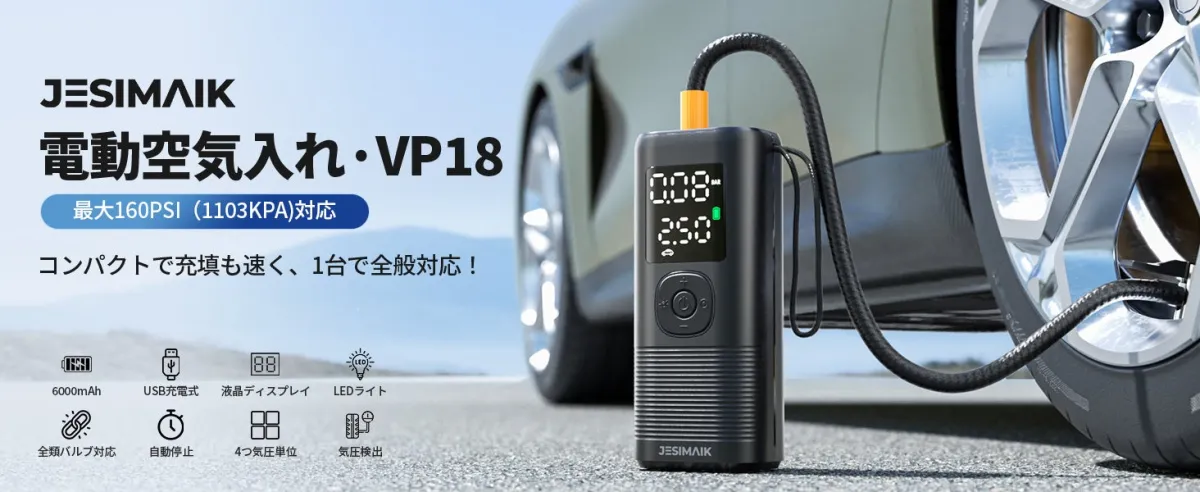 2025年6月23日、JESIMAIK(ジェスマイク)が新しい電動空気入れ「VP-18」を発表します。この製品は、特にその充填の速さが注目されており、30秒でタイヤを充填する能力を誇っています。