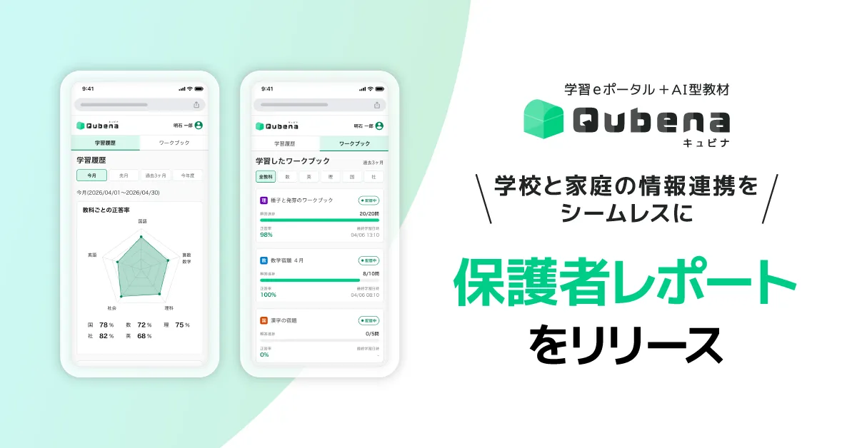 「保護者レポート」で表示されるデータは、教師の管理画面「キュビナ マネージャー」にも