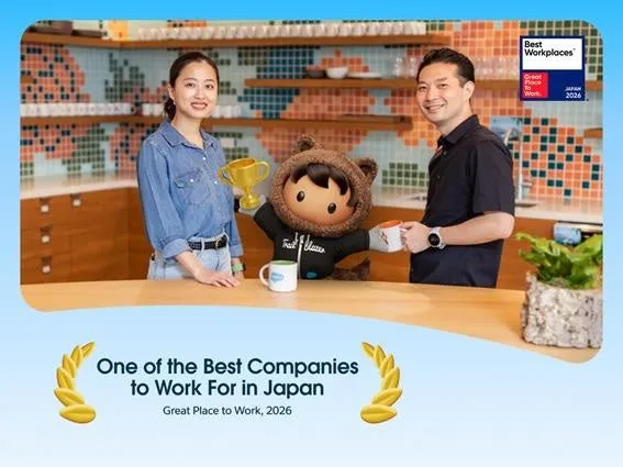 SalesforceがGreat Place To Work® Institute Japanの2026年版「働きがいのある会社」ランキングで第3位にノミネートされました。このランキングは、従業員1,000名以上の企業を対象にしたもので、数十年にわたるデータと調査基準に基づいています。