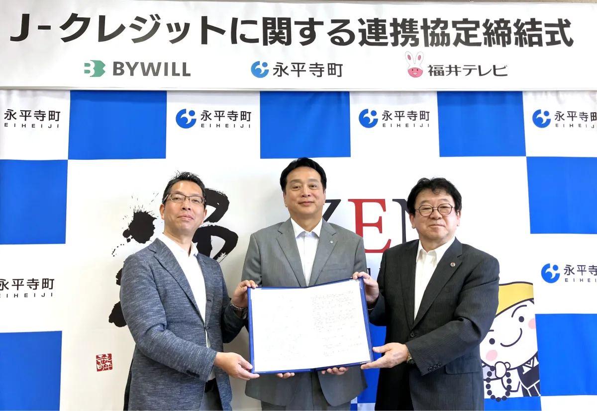 永平寺町、バイウィル、福井テレビがカーボンニュートラル目指す協定を締結