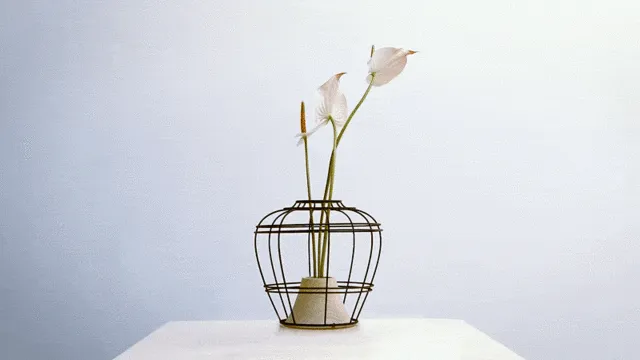 今回、KIMUが提案するのは、全く新しい発想から生まれた上下花器「The New Old Vase」です。この花器は、ワイヤーフレームを使用し、従来の東洋の花瓶の形を模して作られていますが、その特徴は使う人の創造力をかき立てる点にあります。フレームの内部または上部に小さな花器を設置することで、花や葉を自由に配置し、豊かな演出が可能です。これにより、生け花の花器の概念が一新され、過去の形式から解放されるかのようです。