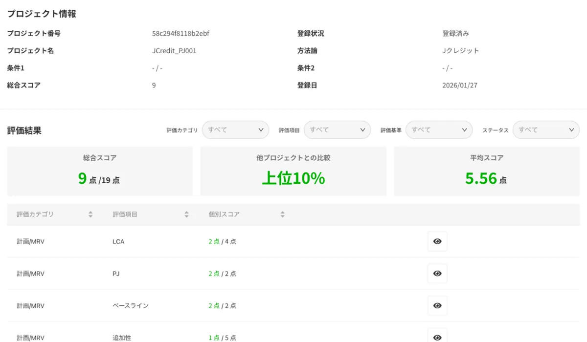 今般の機能拡充により、GreenCheckerでは約800件の全Jクレジットのプロジェクト評価結果を提供可能です。これまで提供されていたボランタリークレジットに加え、コンプライアンスクレジットの評価も行えるため、企業はより有用な情報を元にカーボンクレジットを活用する判断ができます。特に、各国での炭素ルールの整合性やリスク評価に対するニーズが高まっています。