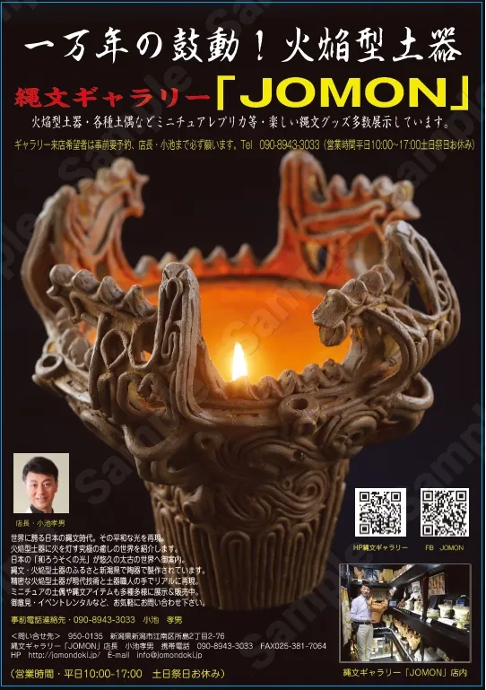 縄文ギャラリーの代表である小池孝男氏は、若い頃から古代に魅了され続け、縄文時代の土器への情熱を持つ人物です。彼は、手描きの越後花ろうそくを生業としながら、10年前より縄文土器のろうそく立て製作をスタート。2019年には「JOMON」をオープンし、縄文文化の復興を目指しています。最近では、縄文土器型の土鍋「火焔型DONABE」が日本商工会議所から特別審査優秀賞を受賞し、多くのファンの声を集めています。