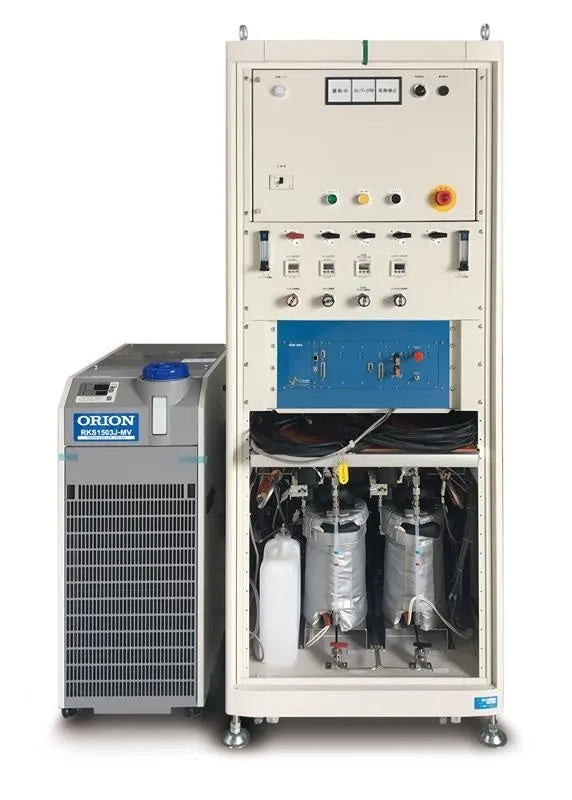 固体高分子形燃料電池(PEFC)の発電特性評価に特化したシステムで、電子負荷装置や燃料ガス供給装置などを統合しています。全自動運転が可能なオプションも用意されており、効率的な評価ができます。