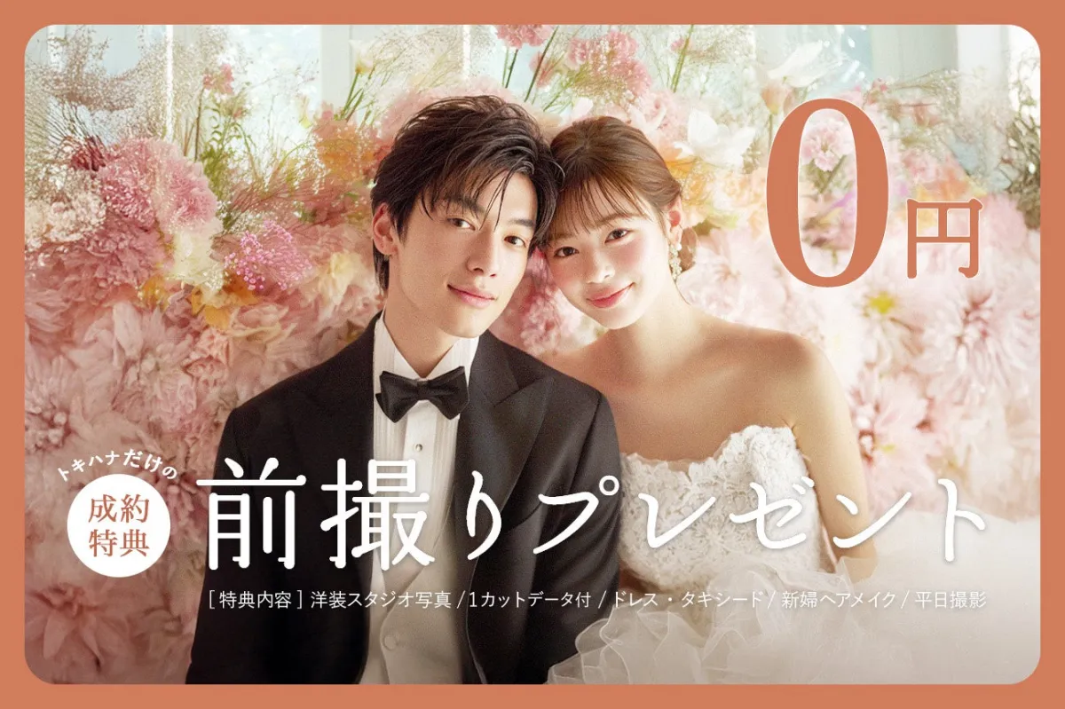 トキハナは、結婚式場の選定から準備までをサポートするサービスです。「トキハナメイト」という役割があり、ここに登録することでさまざまな特典を受けることができます。今回追加された前撮りの特典もその一環として位置づけられています。これにより、結婚準備の負担を軽減し、よりスムーズに理想の結婚式を実現する手助けをすることが可能です。
