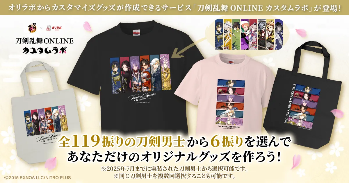 「刀剣乱舞ONLINE カスタムラボ」が、ファンの期待に応え特設サイトでスタートしました。このサービスでは、人気ゲーム「刀剣乱舞ONLINE」のキャラクターである刀剣男士の中から、最大6振りを選び、自分だけのデザインのTシャツやトートバッグを作成できます。
