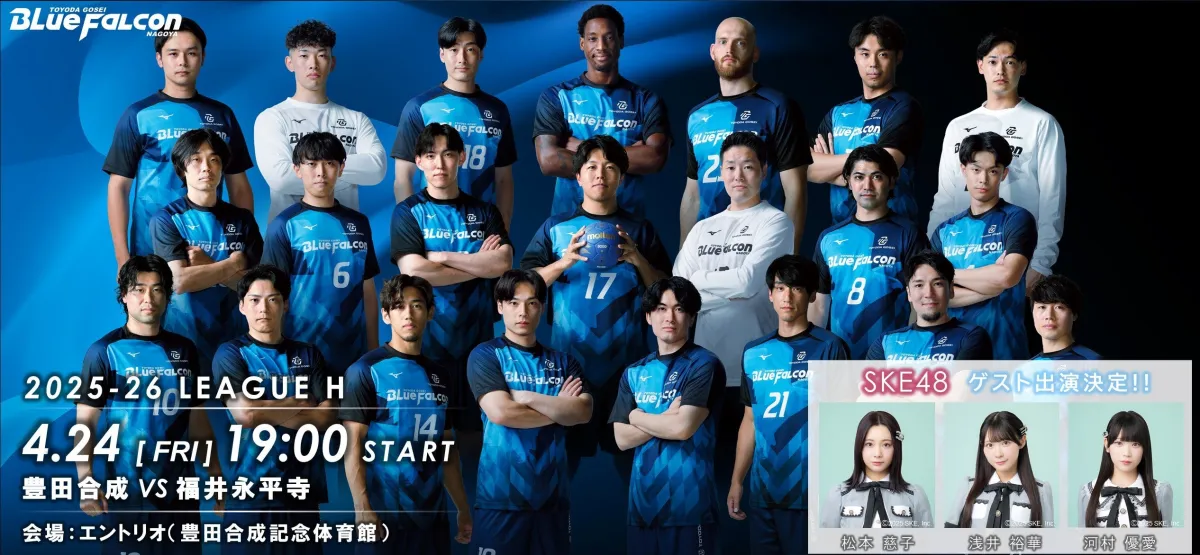 4月24日(金)、愛知県稲沢市のエントリオで、豊田合成ブルーファルコン名古屋と福井永平寺ブルーサンダーの激闘が繰り広げられます。この試合はハンドボールリーグHの一環であり、両チームともに勝利を目指して全力を尽くすことでしょう。