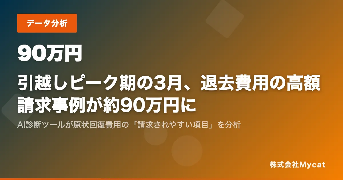引越しシーズンが近づくにつれて、退去費用に関するトラブルが多発しています。費用が高額請求されることもあり、引越しを控えている方々にとってこの問題は大きな関心事です。そんな中、株式会社Mycatが退去費用に関する実態を分析したレポートを無料で公開しました。このレポートでは、高額請求の事例や、退去費用の分析結果が詳細に記載されています。
