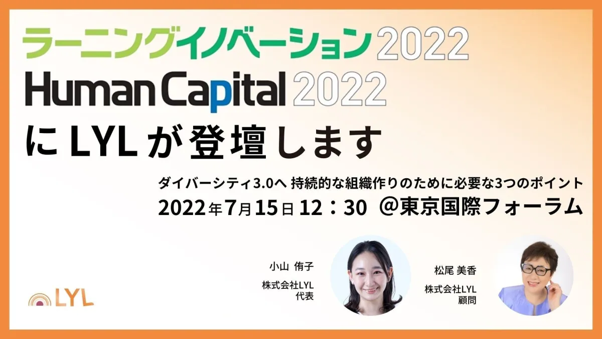 株式会社LYLは、2022年7月13日(水)~15日(金)に東京国際フォーラムで開催される「ヒューマンキャピタル2022/ラーニングイノベーション2022」に出展します。
