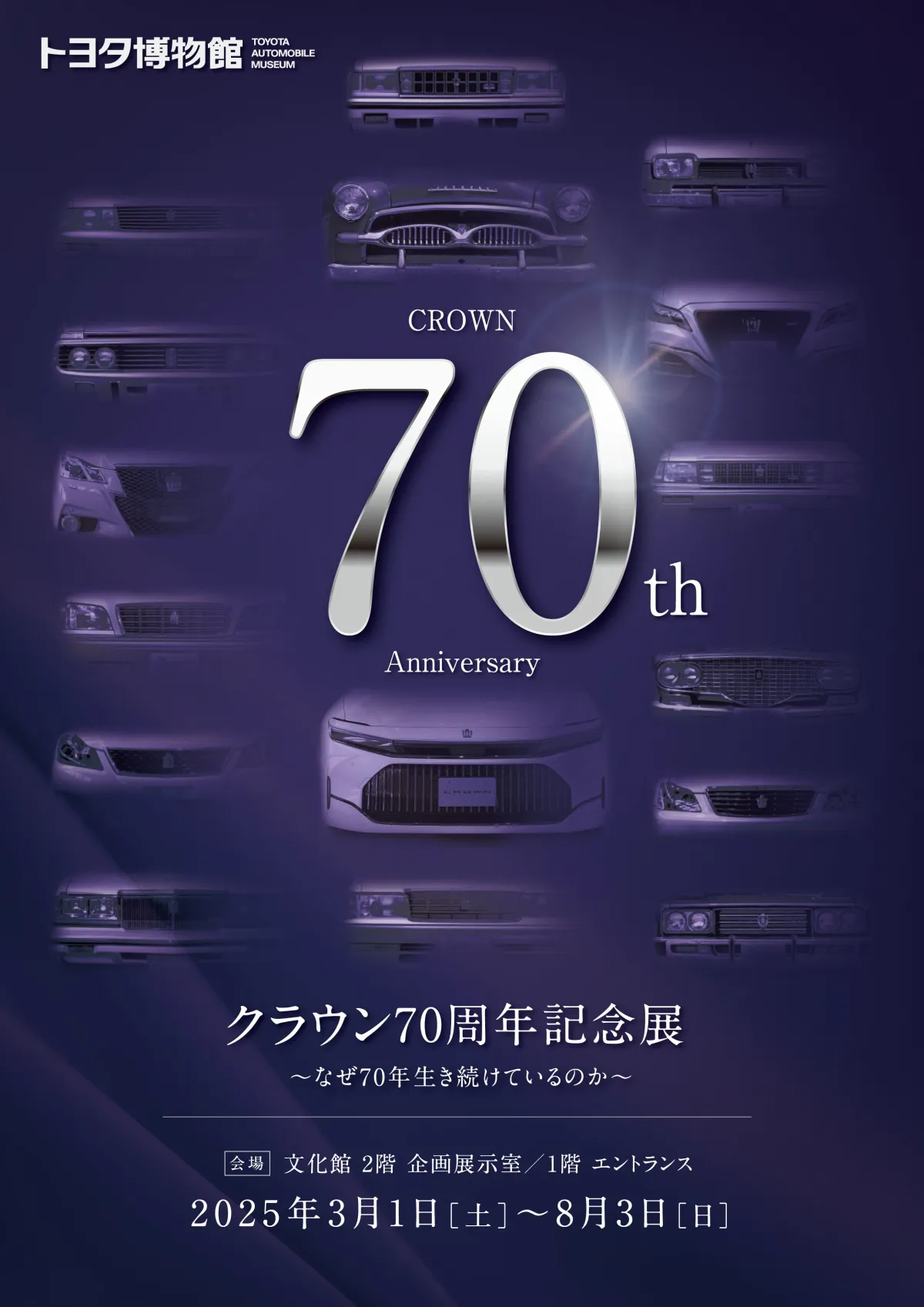 トヨタ自動車が誇る国産乗用車「クラウン」。その歴史は1955年の販売開始にさかのぼり、今年で70周年を迎えます。愛知県長久手市にあるトヨタ博物館では、この記念すべき周年を祝う特別企画展「クラウン70周年記念展~なぜ70年生き続けているのか~」を2025年3月1日から8月3日までの期間限定で開催します。