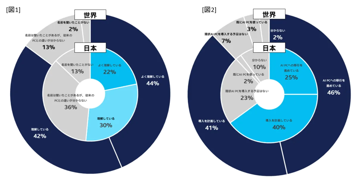調査によって明らかになったのは、日本国内のAI PCに対する理解度が52%と、世界的に見ても大きな差が存在することです。全体の理解度は85%に対して、日本は34ポイントも低い結果となっています。また、AI PCの導入を進めている企業は65%に留まり、世界標準に比べて22ポイントの差があることも示されました。