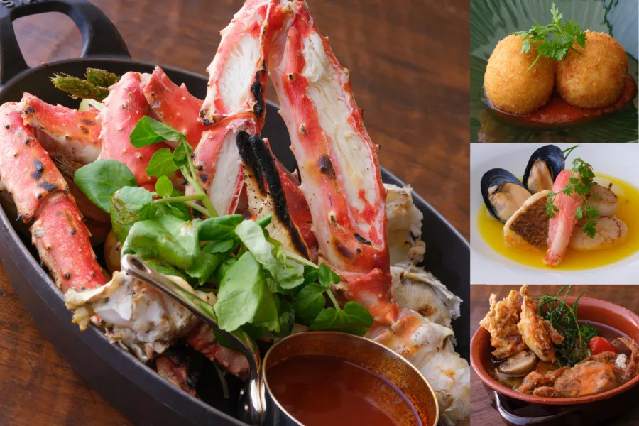 他にも、ひとくち蟹クリームコロッケ、ソフトシェルクラブのアヒージョ、蟹クリームグラタン、蟹クリームコロッケバーガーなど、好みに応じて選べるメニューが揃っています。お手軽に楽しめるアラカルトも充実しているため、特別な日だけでなく、普段使いにもぴったりです。