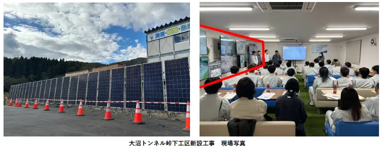 これらの現場で使用される太陽光パネルは、電力を供給しながらも、環境負荷の低減を実現しています。特に、大沼トンネルでは、発電された電力が現場内のインフォメーションセンターのモニター用電源として利用されており、充放電を繰り返しながら効率的に運用されています。