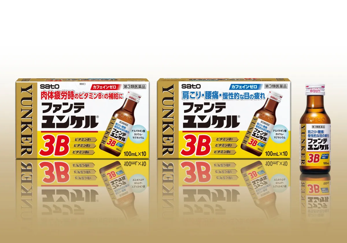 『ファンテユンケル3B』は、これまでのミニドリンク剤と比べ、飲み応えのある100mLタイプです。この新製品では、従来のフォーミュラに改良を加え、ビタミンB2やB6の配合量を増やしました。また、アスパラギン酸カリウムとマグネシウムを新たに追加し、肉体疲労や肩こり、腰痛、眼精疲労といった様々な悩みにより幅広く対応できるようになりました。