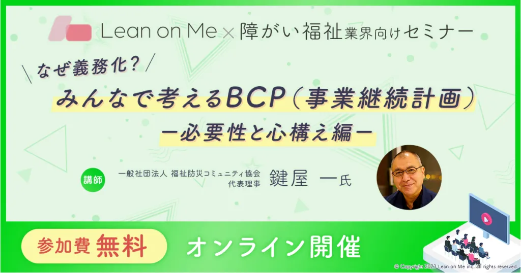 障がい福祉の支援者必見!無料オンラインセミナー「BCPについて考える」開催