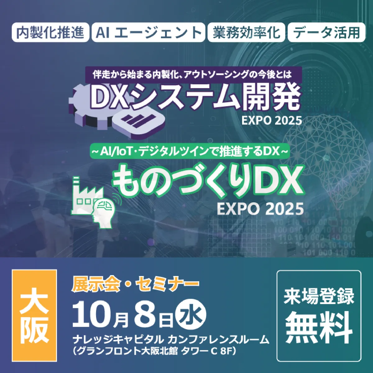 2025年10月8日、水曜日、グランフロント大阪にて「DXシステム開発EXPO 2025」が開催されます。このイベントは、企業のデジタル・トランスフォーメーション(DX)部門やIT部門の担当者を主な来場対象とし、超高速開発、DX人材育成、データ活用、コスト削減を中心テーマに据えた展示会です。