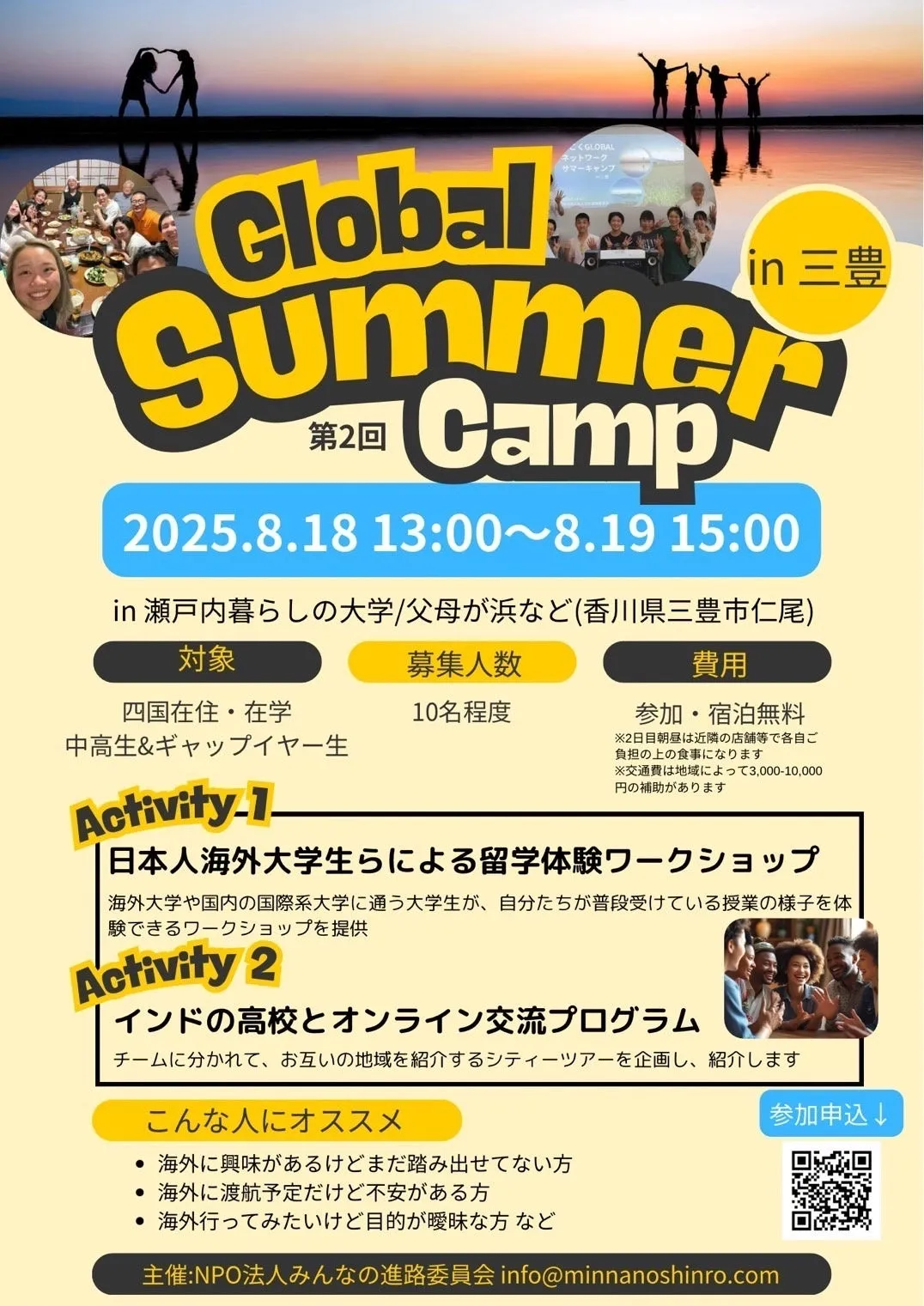 香川県三豊市で、今年も待望のGlobal Summer Camp 2025が開催されることが決まりました。このサマーキャンプは、海外の大学生と直接交流できる貴重な機会であり、四国地方の中高生がグローバルな視点を持つきっかけを提供します。