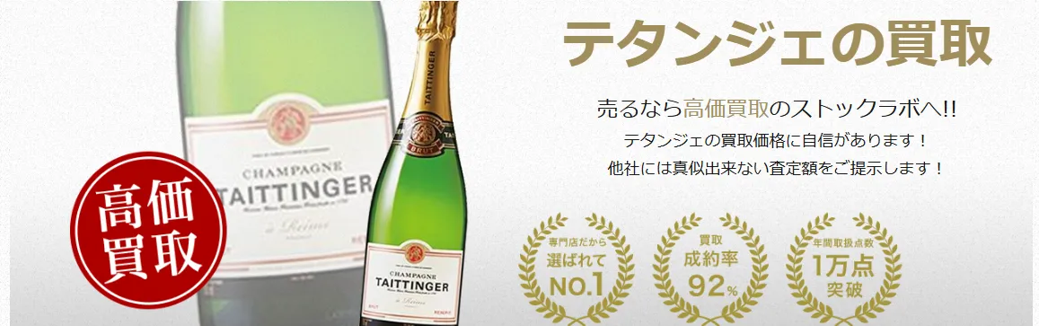 ストックラボは、専門知識を持つ査定士が在籍しており、テタンジェに関する豊富な経験を活かした査定を行っています。特に、テタンジェのシャンパーニュは「エレガントなシャンパーニュ」と称されるほど、味わいとブランド力が魅力です。このため、ストックラボではその価値を最大限に引き出す査定を行い、安心して売却できる環境が整っています。