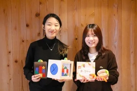 学生たちは学内の保育園や児童図書館での実践経験を活かし、実際にこどもたちと触れ合いながらアイデアを練り上げていきました。この過程で生まれたのが、二つの新しい知育玩具「みててBOX」と「PUTON(プトン)」です。