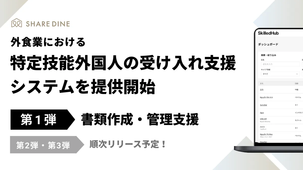 飲食業界における人手不足の問題を解消すべく、株式会社シェアダインが新たに特定技能外国人の受け入れ支援システムを提供することになりました。本サービスは特に外食業界注目の内容となっており、同社が長年培ってきた専門人材の採用やマッチングのノウハウを活かして、彼らの雇用に必須の各種書類の作成と管理を大幅に効率化します。