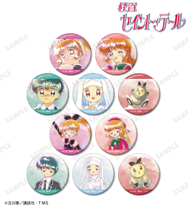 まずご紹介するのは、トレーディング Ani-Art aqua label 缶バッジ。怪盗セイント・テールやその仲間たちのイラストが水彩調のアナログテイストで仕上げられています。カバンや小物に飾ったり、お部屋のインテリアとしても楽しめるアイテムです。