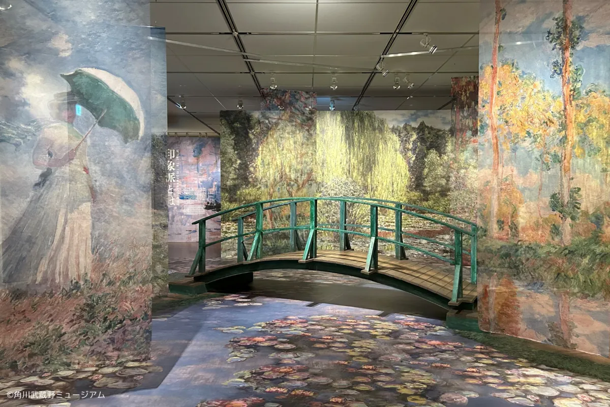 さらに、展示にはモネを学ぶエリアも設けられています。印象派展の歴史や、モネが影響を受けた文化、彼が得意とした「連作」の技法について解説しています。また、ジヴェルニーの「睡蓮の池」をイメージしたフォトスポットもあり、来場者がモネの視点を楽しめる機会も提供。