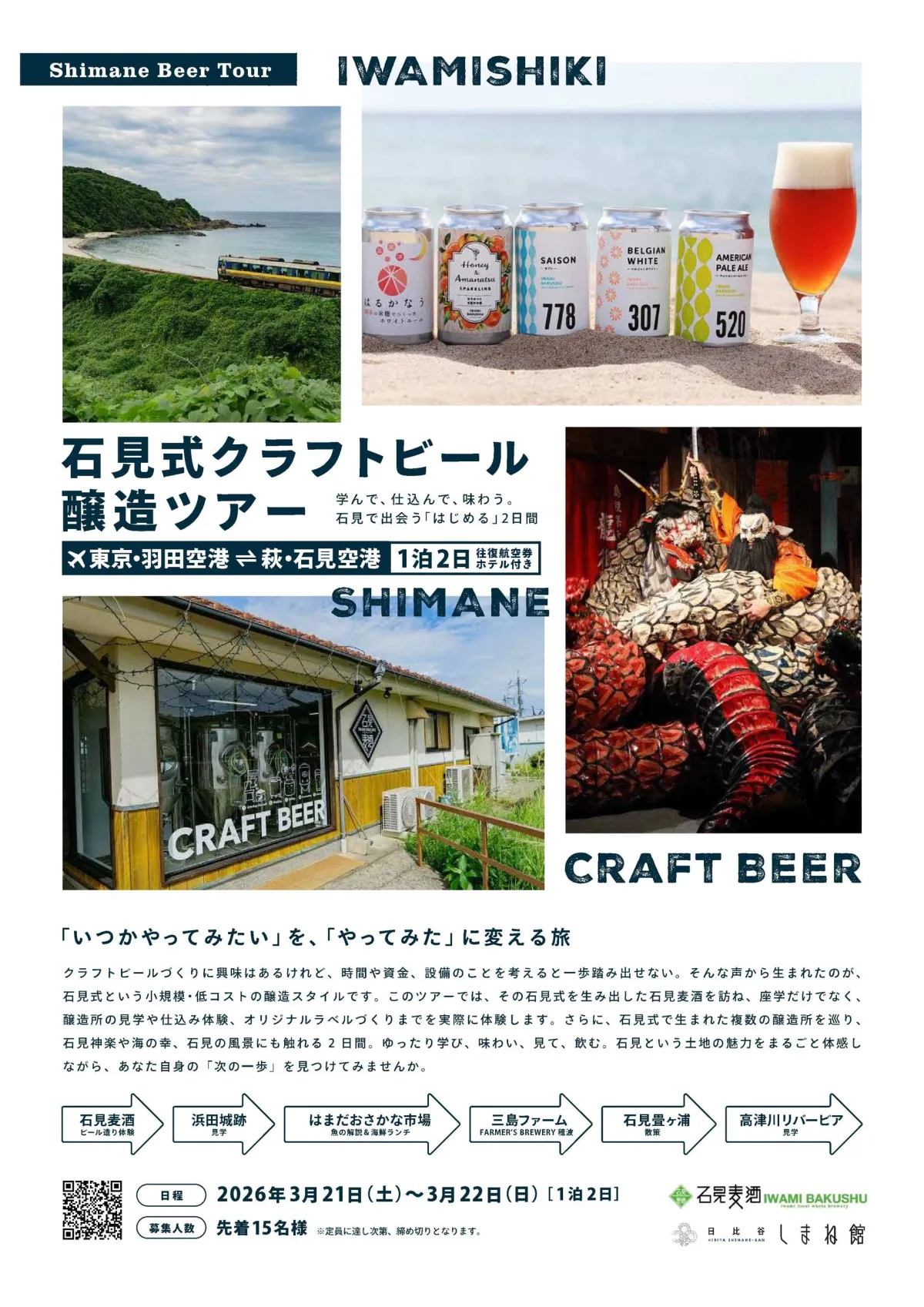 島根県では、江津市のクラフトビールメーカーである「石見麦酒」と連携したユニークなツアーが2026年3月21日から22日にかけて行われます。今回の「石見式クラフトビール醸造ツアー」は、ビール造りを体験しながら地域の魅力を余すところなく感じられる貴重な機会です。