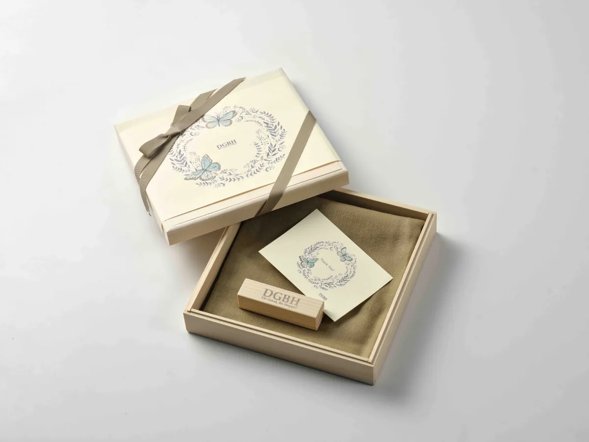 DGBHでは、オーガニックコットン製のトートバッグや巾着、そして北海道白老町の有限会社三和製箱と共同開発したトドマツ材のギフトボックスをご用意。これらのアイテムは、環境に優しく、贈り物の価値を引き立てることを目的としています。特に、トドマツのギフトボックスは、自然な香りと質感を持ち、受け取った方々が長く使えるよう設計されています。