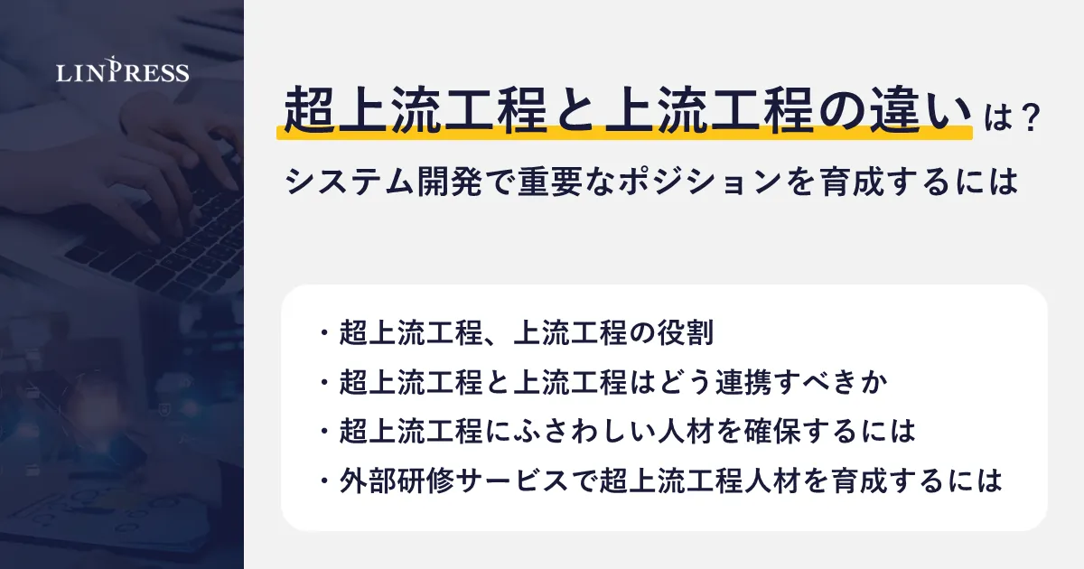 システム開発において、超上流工程と上流工程は極めて重要な役割を果たします。株式会社リンプレスが発表した記事では、これらの違いを理解することがいかに企業の競争力に関わるかが述べられています。特に、デジタル化やDXの推進において、この理解は不可欠です。