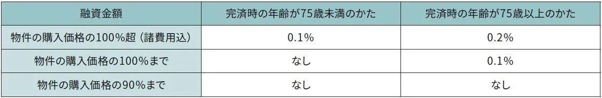 新規購入の場合、融資金額の割合や完済時の年齢によって金利が異なります。この組み合わせにより、最大で0.2%の金利上乗せがあることが明記されていますし、借換えの場合にも同様に融資期間に応じた金利の上乗せ幅が設定されているため、長期間にわたって安心して利用できるものになっています。