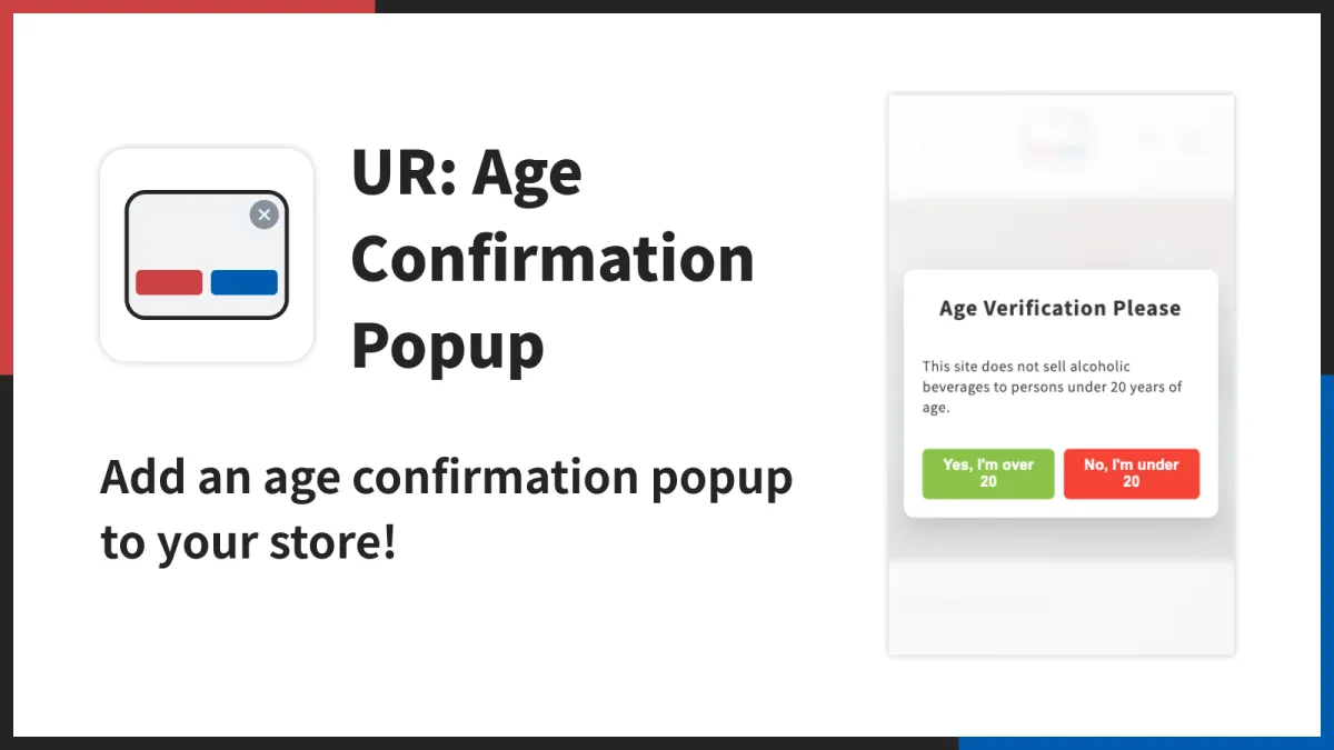 「UR: Age Verification Popup」は、訪問者のプライバシーを守りながら、安心・安全なショッピング体験をサポートします。ストアオーナーは、法令を遵守しつつ、顧客に快適な環境を提供できるようになります。