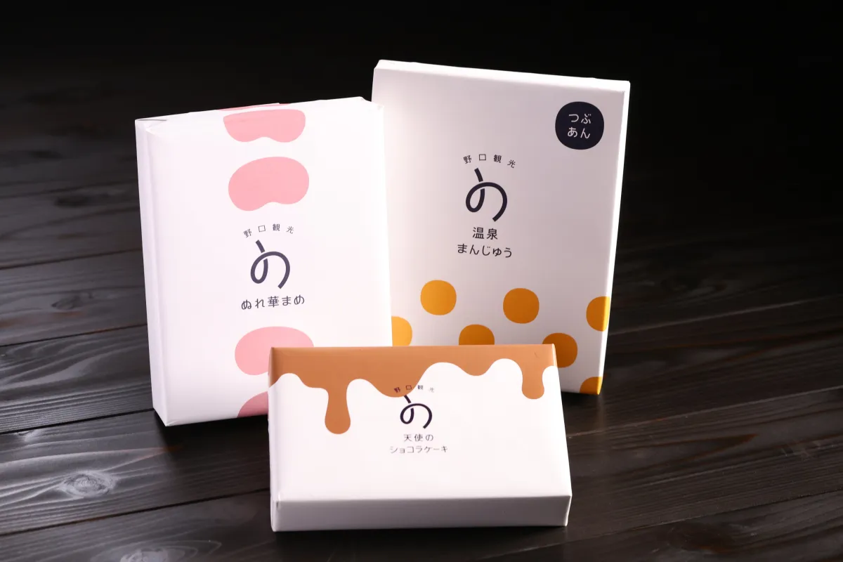 例: 北海道の味覚としては加工品、湯河原の銘品には地元の特産物など。