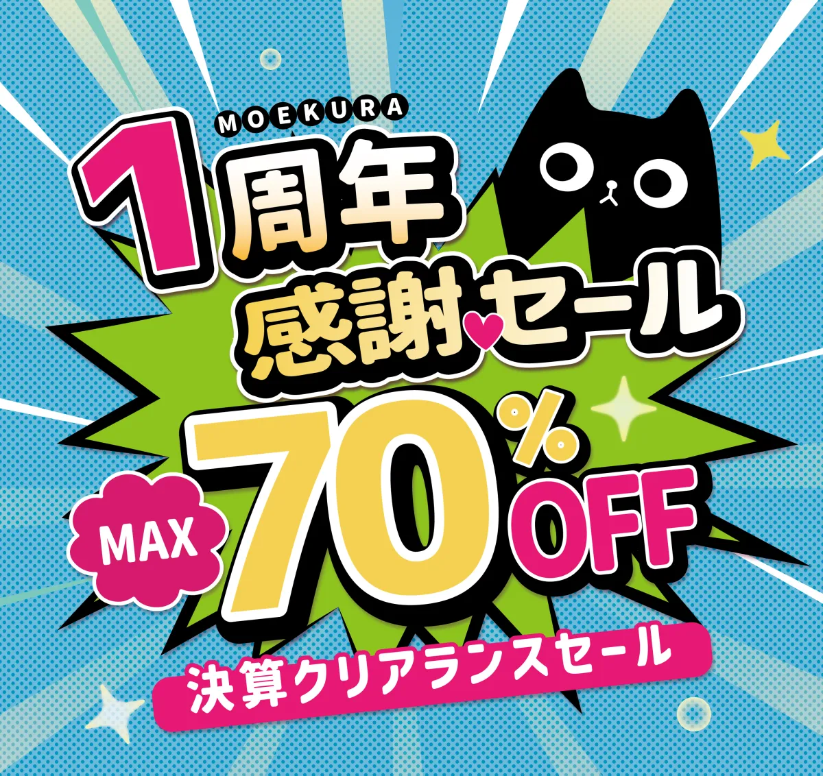 渋谷スクランブル交差点近くに位置する人気のキャラクターグッズ&フィギュア専門店「萌え蔵」が、オープン1周年を迎えました。この特別な機会を祝し、多くの気持ちを込めて「MAX70%OFF 決算クリアランスセール」を実施しています。このセールは、お客様への感謝の気持ちを表現するものです。