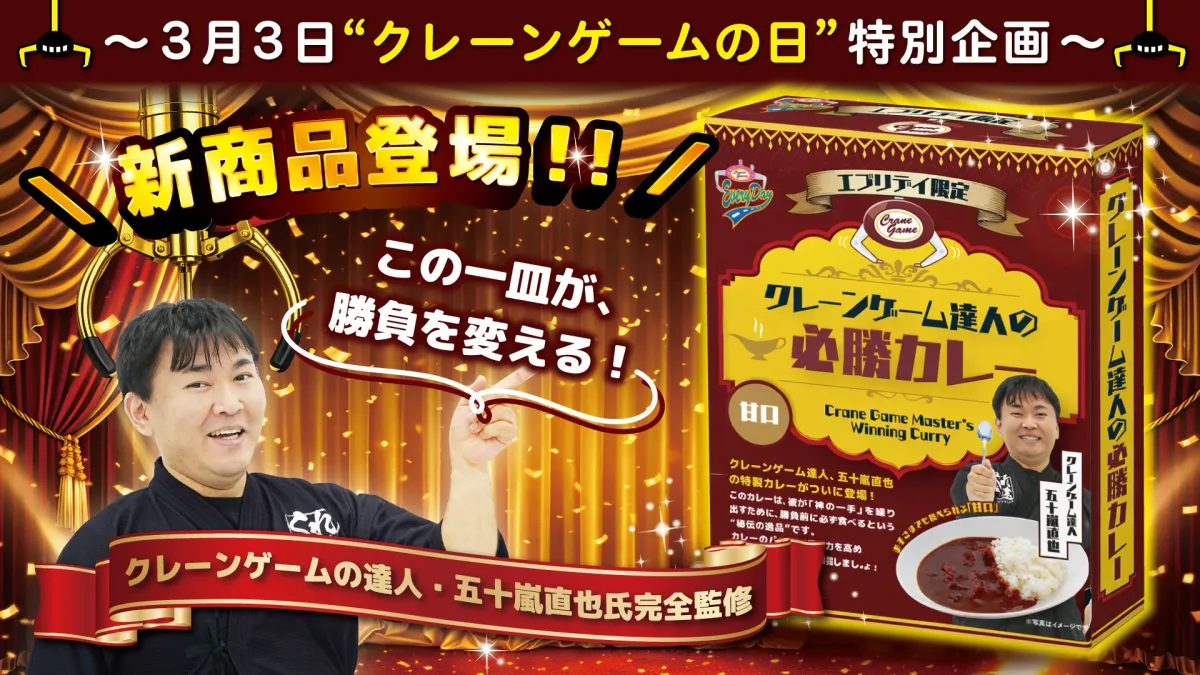 五十嵐直也氏がプロデュースしたこの必勝カレーは、ただのカレーではなく、ゲームをより楽しくするための秘密のアイテムと言えるでしょう。ぜひ、クレーンゲームの日に温かいカレーで集中力を高め、素晴らしいゲーム体験をお楽しみください。期待が高まるこの特別なカレーを、全エブリデイ店舗でぜひ体感してみてください!