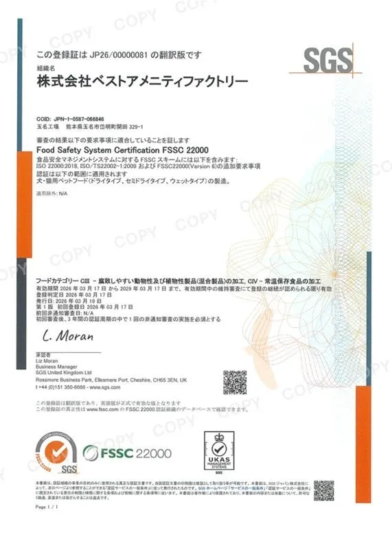 Wiki3: 熊本県 ペットフード 玉名市 FSSC22000 ベストアメニティファクトリー