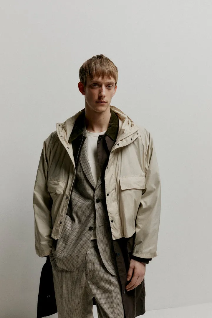 この2つのモデルを元に、現代的なシルエットに仕立て直し、コットンキャンバス素材にコントラストカラーのオーバーガーメントを組み合わせた2-in-1デザインを導入しています。オーバーサイズのシルエットやドローコード、サイドジップなど、船乗りのユニフォームにインスパイアされたディテールが随所に施されています。