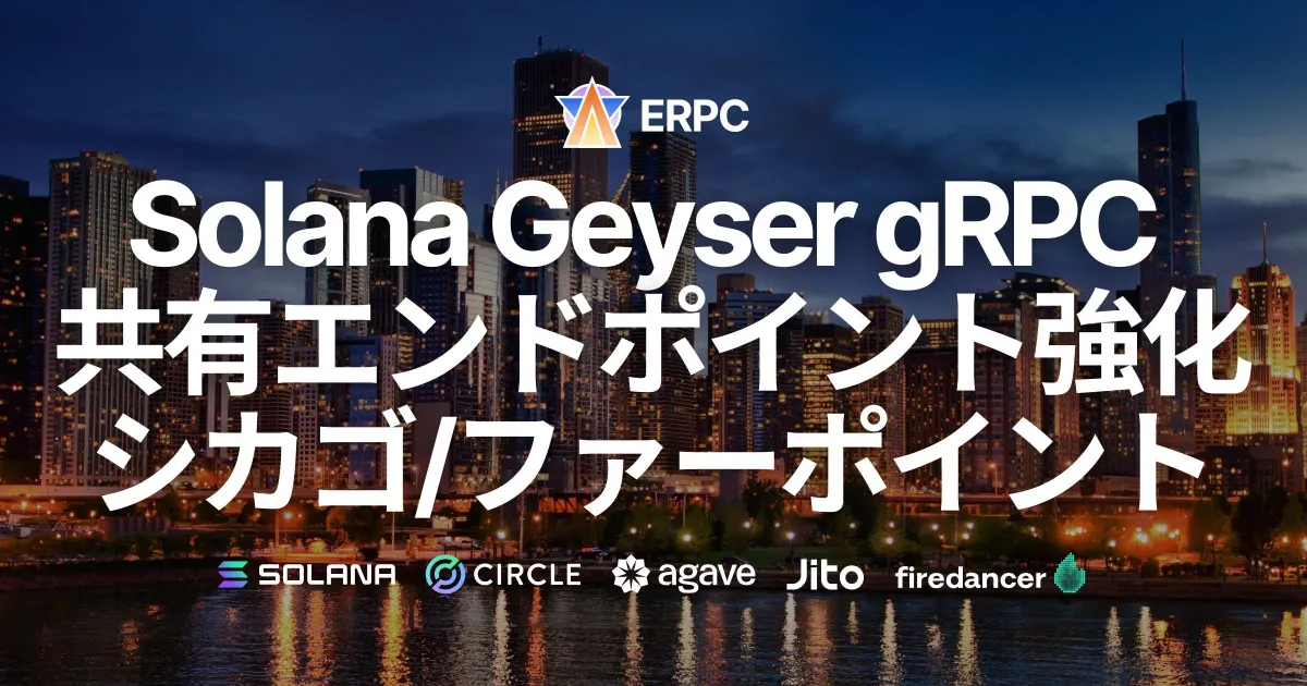 ERPCとValidators DAOは、SolanaのGeyser gRPC共有エンドポイントに対して重要なアップグレードを行いました。今回の強化は、シカゴとファーポイントのノードを増強し、米国全域での通信の安定性とスループットを向上させることを目的としています。これにより、従来以上に安定したデータ処理が実現され、急速に拡大するアクセス需要に応えることが可能となりました。