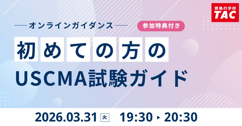 資格取得を目指すあなたにおすすめの情報です。USCMA(米国公認管理会計士)のオンラインセミナーが2026年3月31日(火)の19:30から開催されることが決定しました。このセミナーでは、USCMAの魅力や試験概要、TACの合格カリキュラムについて詳しくご紹介します。特に、初めてUSCMAを考えている方には、必見の内容です!
