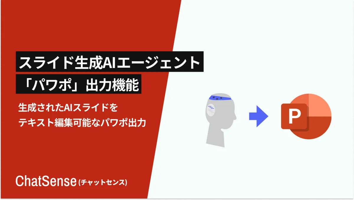 「ChatSense」のスライド生成機能は、社内資料や議事録などのテキストをAIに読み込ませることで、瞬時にプレゼン資料を作成することができます。これにより、企業の業務効率化が進むと多くの企業から好評を得ています。しかし、その一方で生成されたスライドが画像やPDF形式に限られていたため、細かな修正や自社フォーマットへの調整が難しいという声もありました。