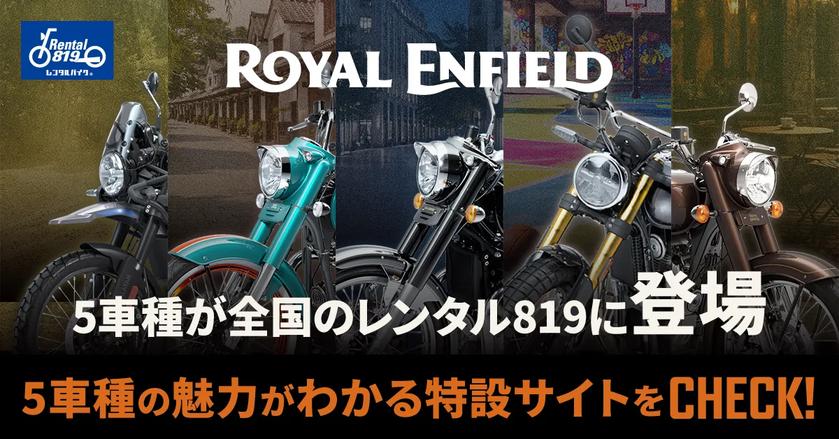 2026年3月20日(金)から、全国のレンタルバイクサービス「レンタル819」で、ロイヤルエンフィールドの5車種が順次貸し出し開始される。この導入により、クラシックなスタイルに魅了されるライダーからアドベンチャーを志向する方々まで、さまざまなニーズに応えるラインアップが整うことになる。