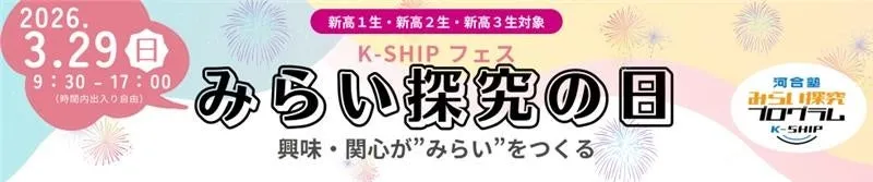 「みらい探究プログラム K-SHIP」のオフィシャルサイトから詳細を確認でき、事前申し込みが必要です。また、特別講座やミニ講座は全11講座がライブ配信され、アクセスも容易。自由なスタイルで参加できるため、気軽に未来の可能性を探ることができるのが特徴です。