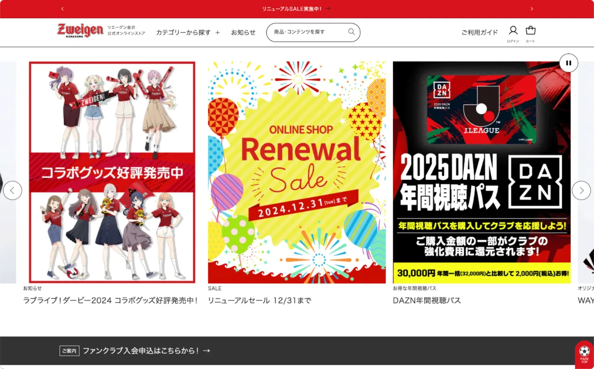 ツエーゲン金沢の公式オンラインショップがリニューアル