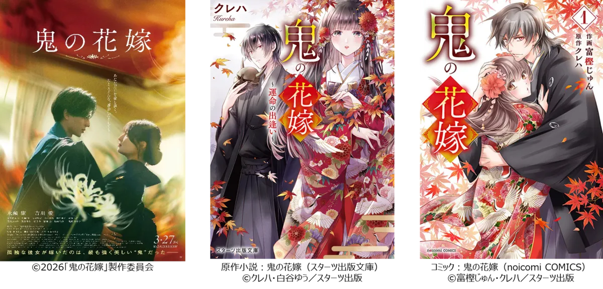 映画『鬼の花嫁』が、永瀬 廉と吉川 愛のW主演で実写化され、2026年3月27日に全国公開されることが決定しました。原作はクレハ著の人気小説で、シリーズ累計発行部数は650万部を超えるヒット作。これまで多くのファンに支持されてきた作品が、映画という新たな形で蘇ります。