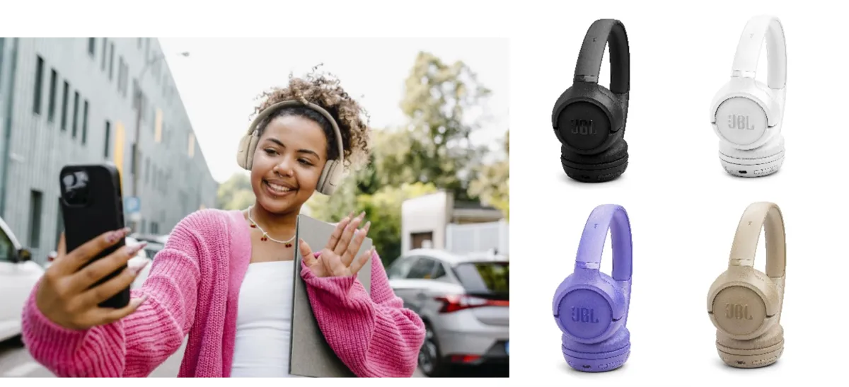 「JBL Tune 530BT」は、約152gと軽量な設計で、持ち運びも非常に簡単です。折りたたみが可能で、旅行や外出時にもコンパクトに収納できます。カラーバリエーションは、定番のブラックとホワイトに加え、ラベンダーとベージュの全4色が用意されています。どのスタイルにも合わせやすいデザインとなっており、普段使いにも最適です。