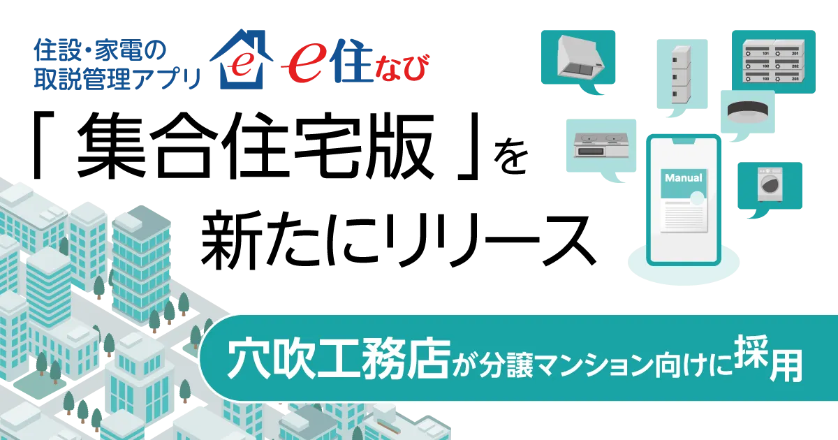 eBASE株式会社は、2021年12月にリリースした住設・家電の取扱説明書管理アプリ「e住なび」を、集合住宅向けに改良を加え新たにリリースしました。これにより、大規模マンション等に住む方々の生活がさらに快適になることが期待されています。