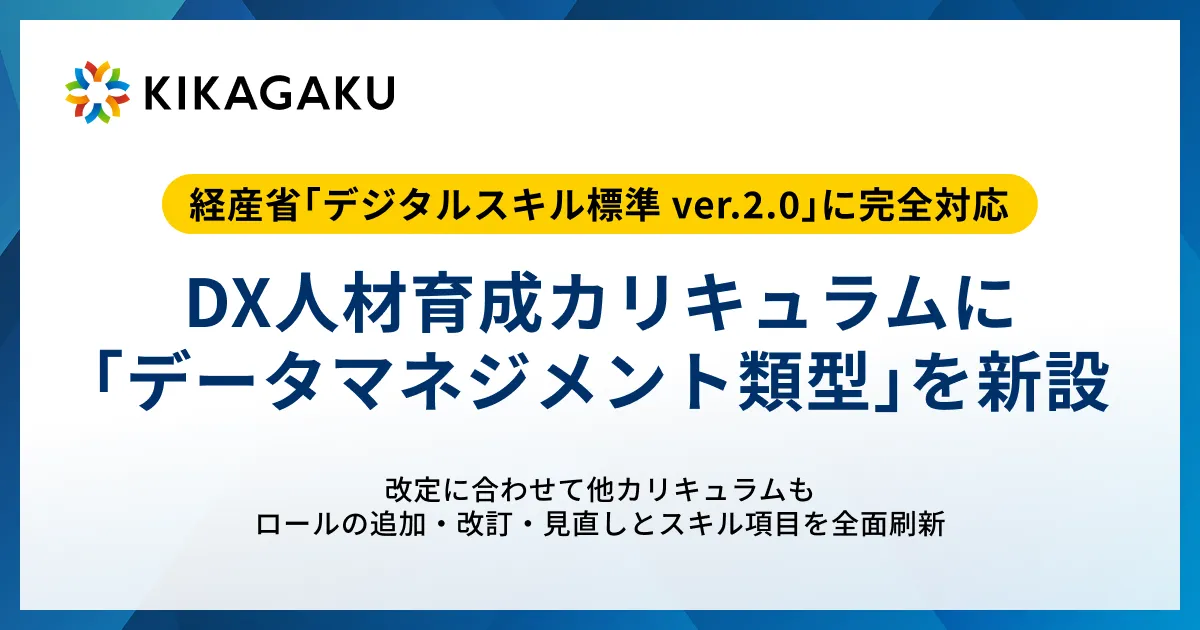 株式会社キカガクは、2026年4月16日に経済産業省と情報処理推進機構(IPA)が改訂した「デジタルスキル標準(DSS)バージョン2.0」に完全対応した新しいカリキュラムの提供を開始しました。これによって、ビジネスやデータ活用に不可欠な最新スキルを身につける環境を提供します。